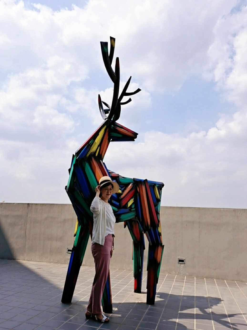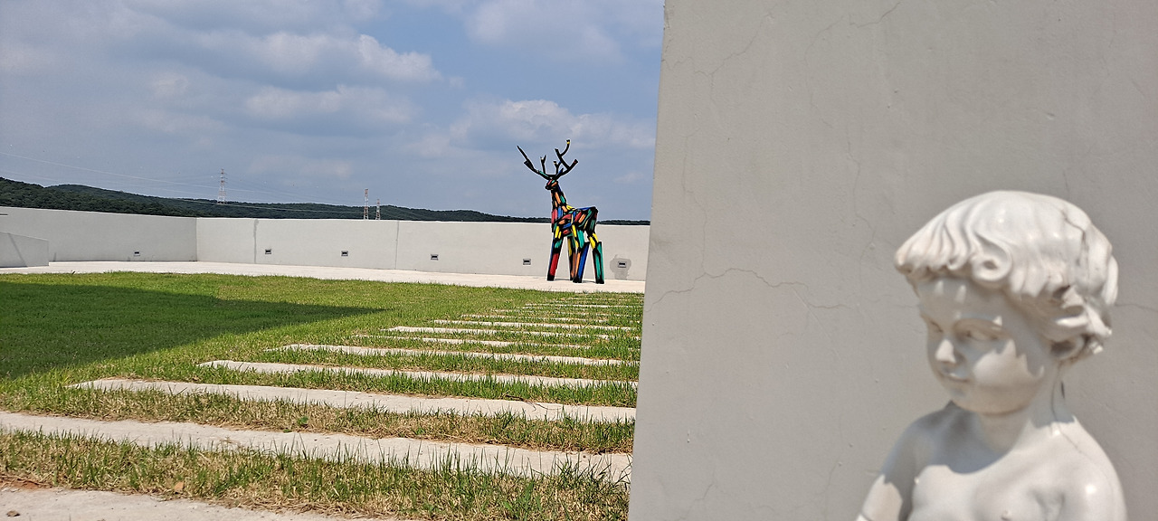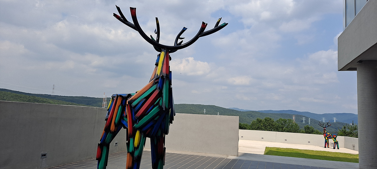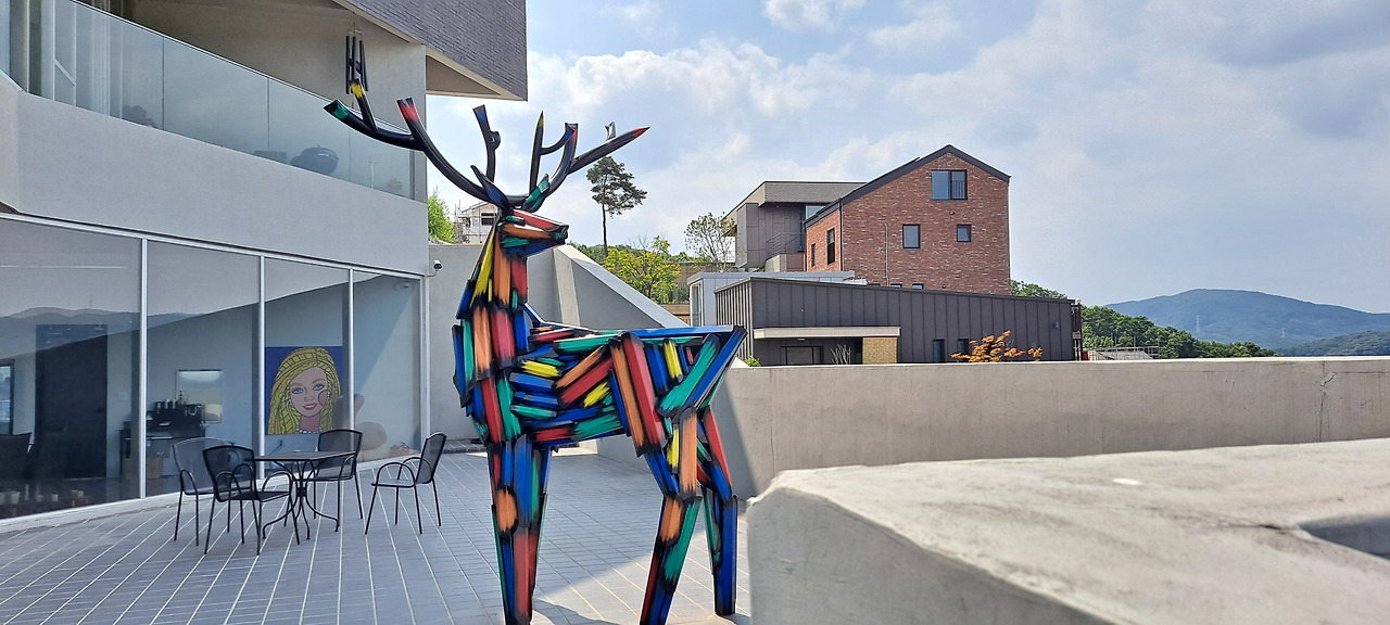 갤러리 2층 카페에 설치된 김우진 작가 작품 deer 세 점.