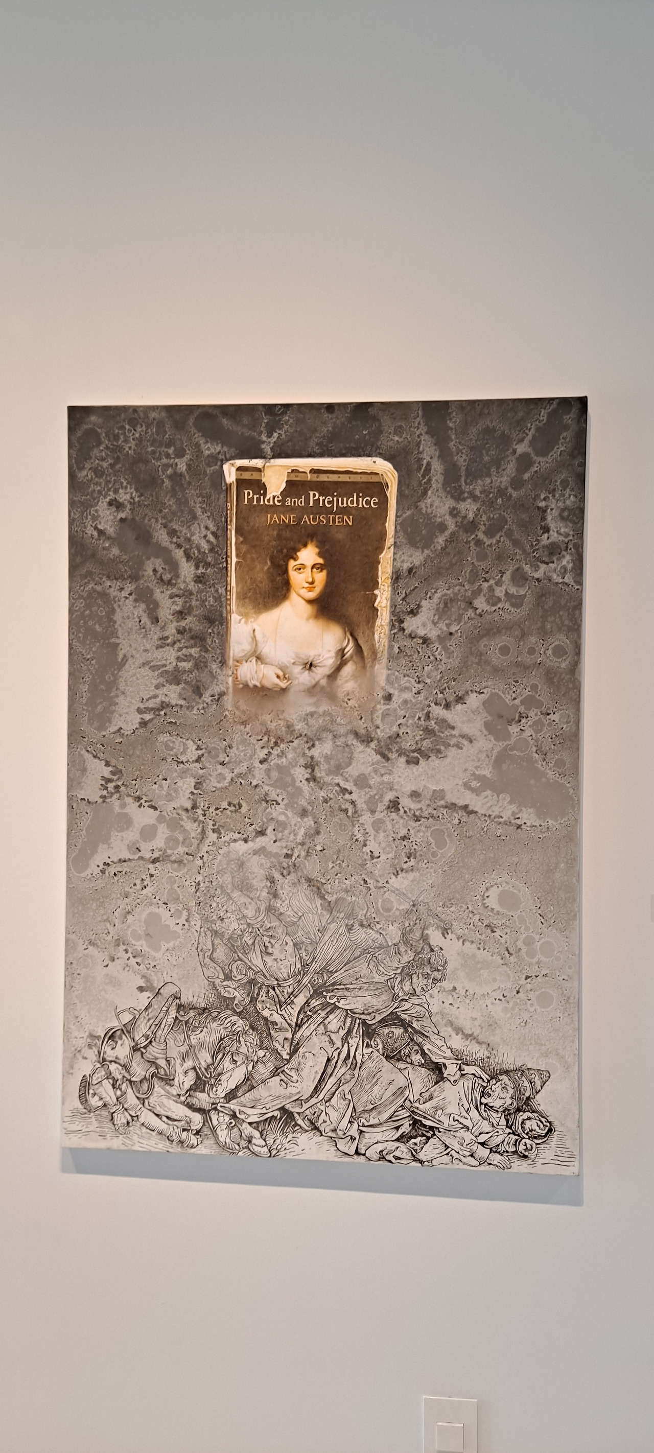 그리스 신화 같은 베이스 위에 제인 오스틴의 오만과 편견 책을 올려놓았네요..