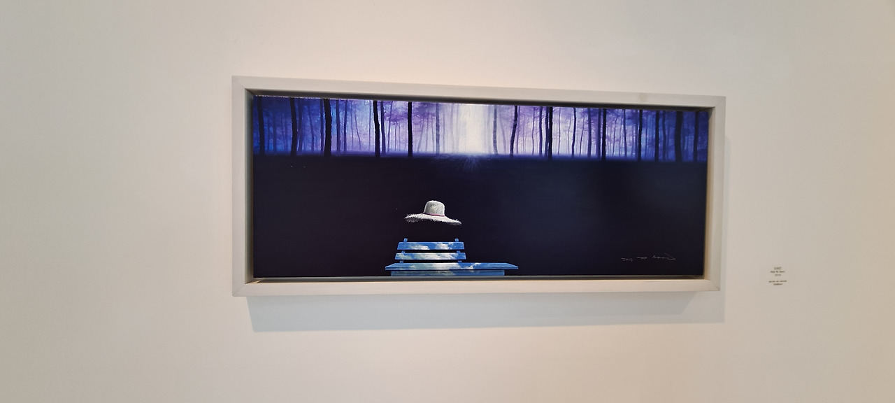 이 작품 역시 (세상 밖 스토리)라는 김성근 작가의 작품입니다. 허공에 떠 있는 모자 앞에 한참을 서 있었지요 초현실주의 작가 어떤 분 생각나시죠? 어쪔 그분을 위한 오마주일지도....