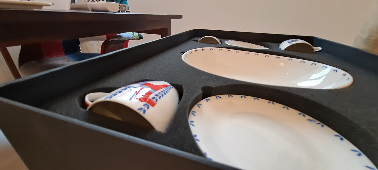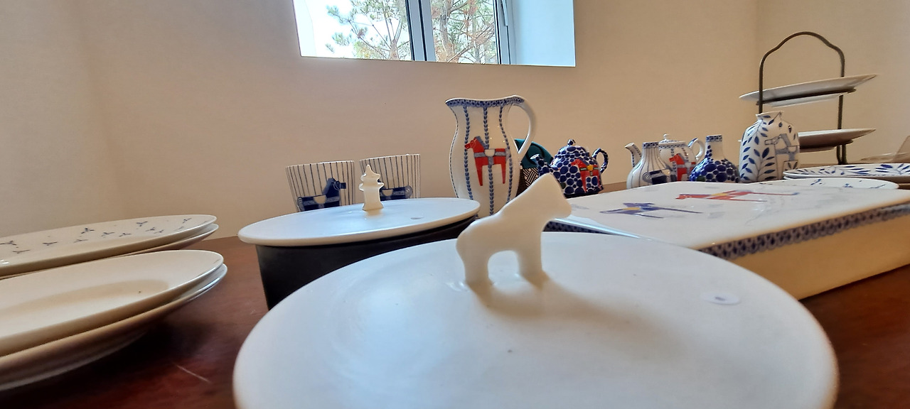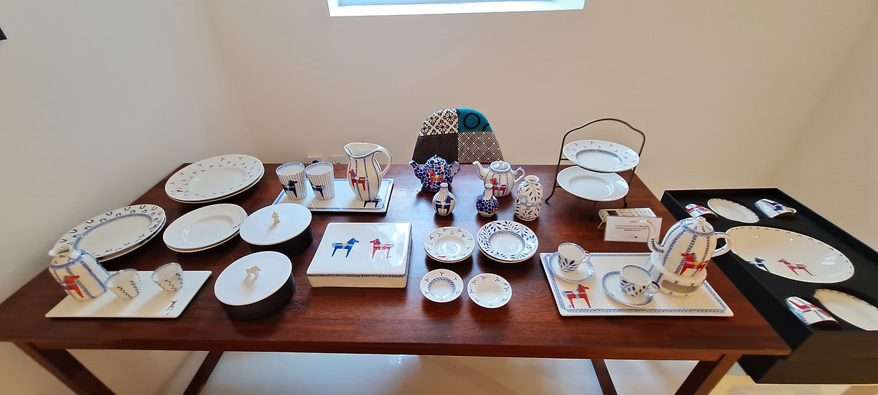 갤러리 2층에 마련된 도예가 한주은 작가의 북유럽 스타일 그릇들.. 아래 도자기 세트는 80만 원에 판매 중.