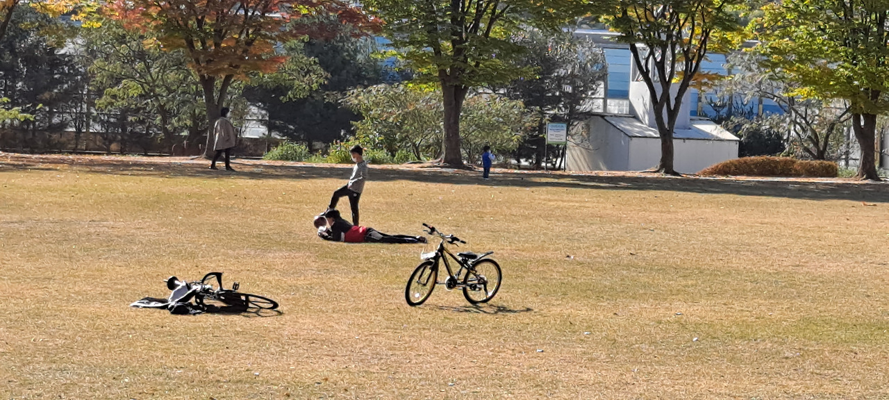 이 짧고도 찬란하고 아름다운 가을이 가버릴까 싶어 나선 많은 차량에 멈춰버린 곳에서의 눈부신 찬란함은 , 오히려 한적한 인파에 더 더우기 행복했었고 , 손녀와 할아버지의 모습도 , 연을 날려주시는 어르신께서 어린 손주의 손을 잡은 모습도 평범치 않고 더 소중하게 바라보게 되던 가족의모습이었다.