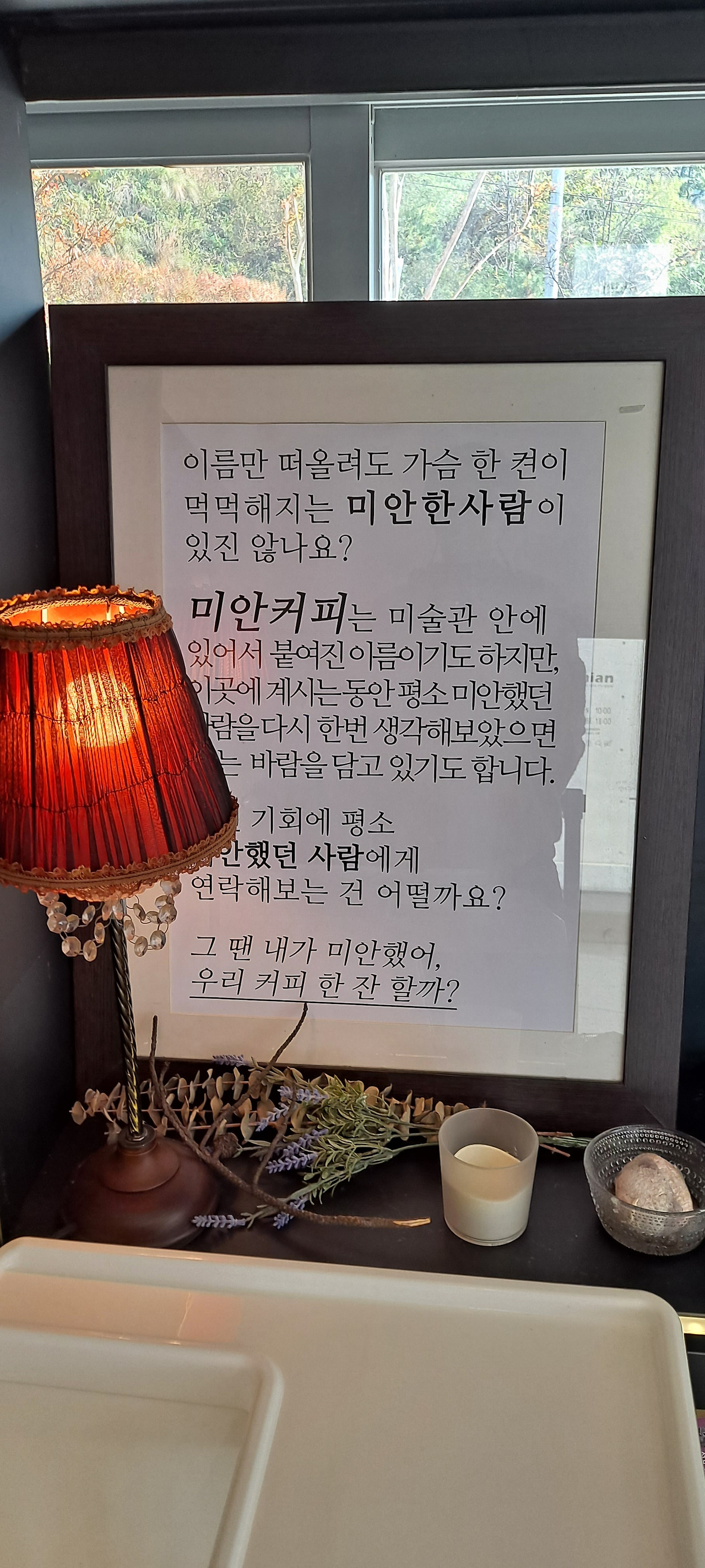 푸르른 하늘과 햇살을 받으며 만추의 풍경 속을 거닐며 산자락의 미술관으로 걸어가던 내게 눈에 띈 글.