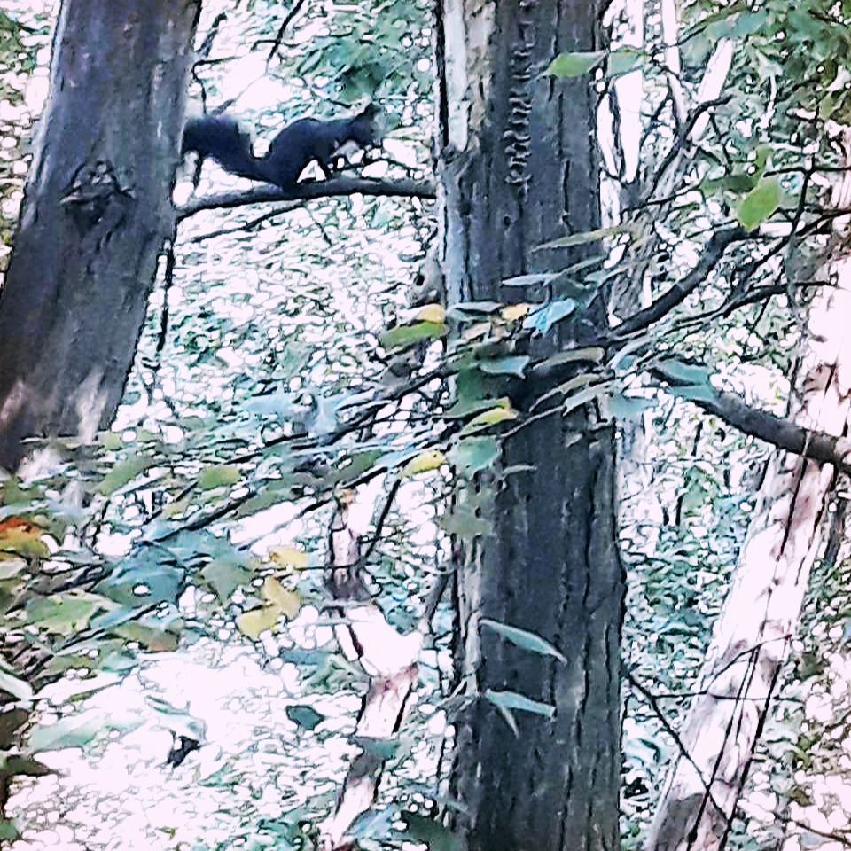 “후루룩 바스락” - 청설모다. 산책길에 가끔 행운처럼 만나는 반가운 동물, 짙은 갈색 털에 복슬복슬한 꼬리를 봉긋 세우고, 잘려나간 나무 그루터기에 서서 앞 두 발로 잡은 먹이를 참 맛있게 먹는다. 그 모습을 보노라니 너무 귀여워 넋 놓고 바라보는데 내 기척을 눈치챘는지 쭉 뻗은 높다란 나무를 쏜살같이 타고 후루루 달아난다. 이 나무 저 나무 잔가지를 훨훨 타며 훌훌 뛰어 날더니 나를 멀찍이 높다란 나무 아래로 떨구어 놓고, 못다 먹은 먹이를 또다시 어디선가 꺼내 냠냠 먹는다.