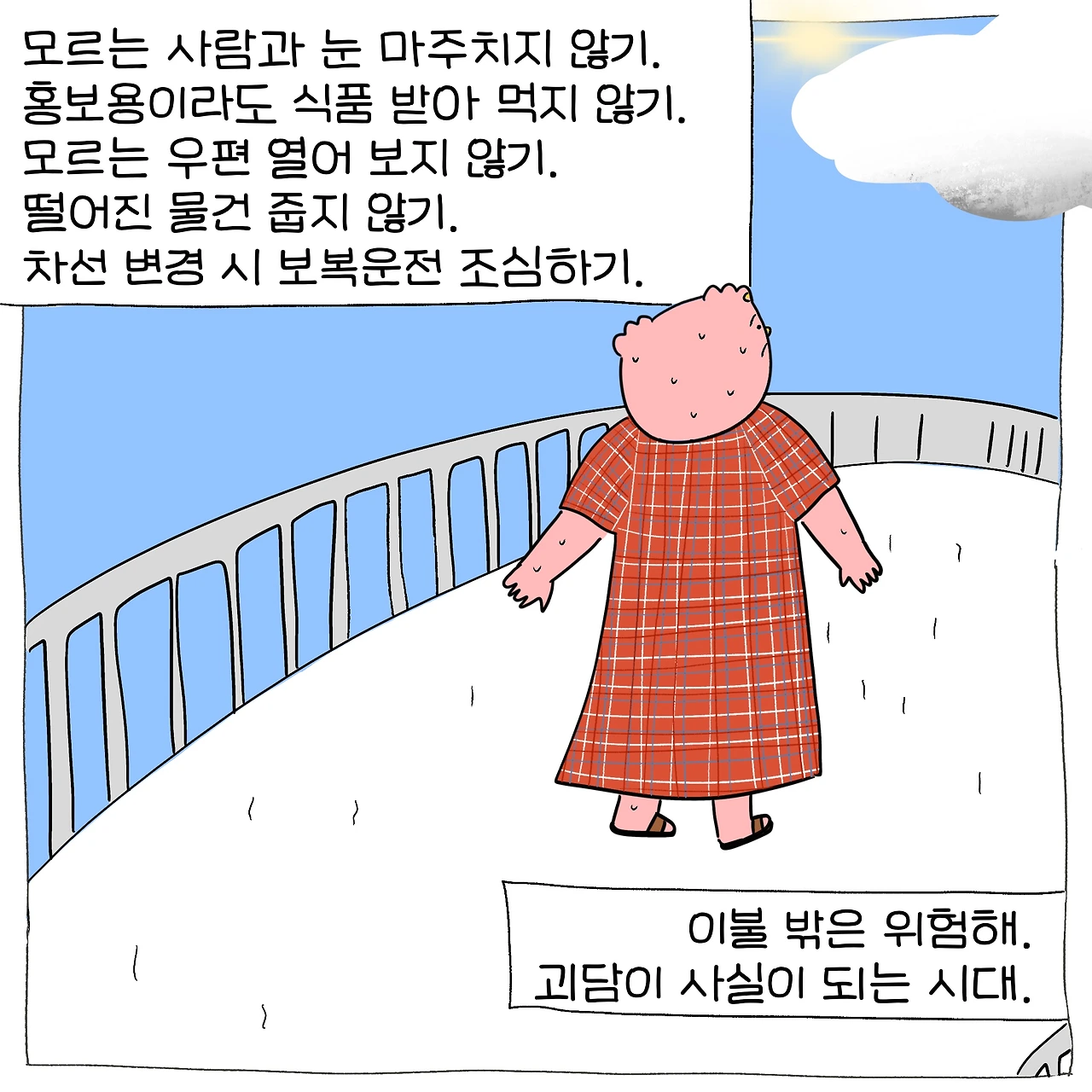 세상을 낙관하며, 그래도 희망을 잃지 말고 살아야 한다고 말하고, 그렇게 사는 것이 과연 맞을까? 그러다 어느 날, 길을 걷다 어떤 미친 사람에게 걸려 비명횡사할지 모르는데… 그럼에도 그걸 두려워하며 하루하루를 잠식할 수는 없다.