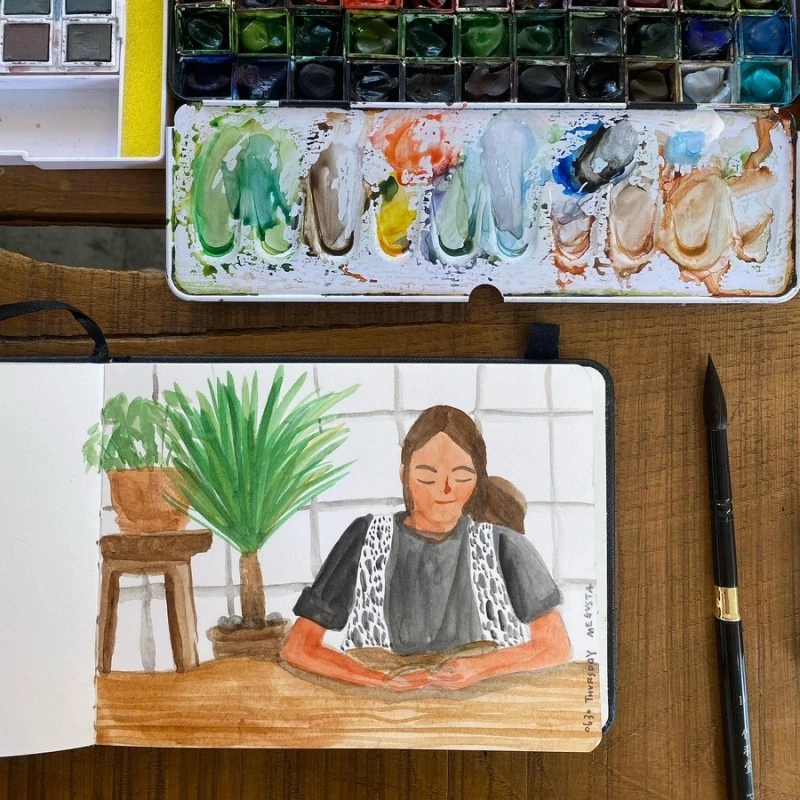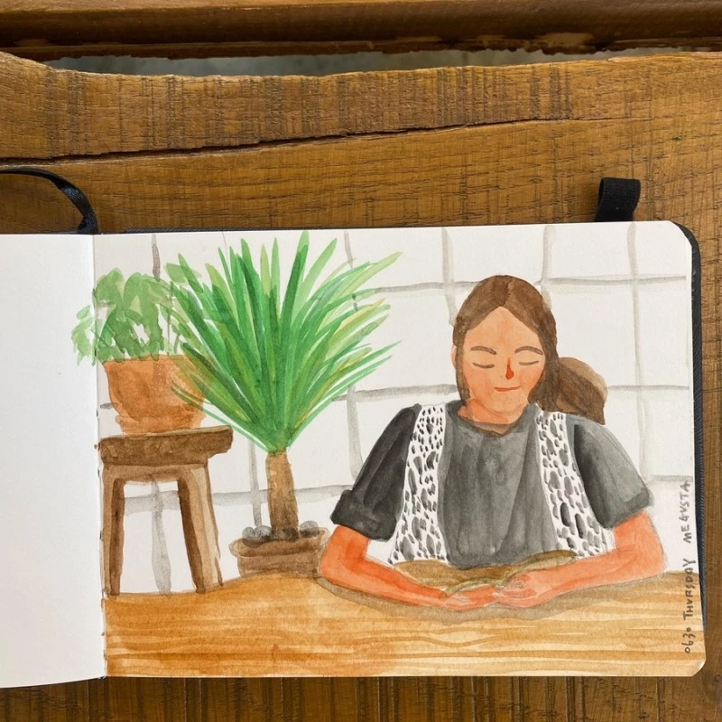 거의 일 년 하고도 절반이 더 흘러서야, 되면 가고, 안되면 말고 라는 마음으로 커피 드실 분? 밥 먹을까요?라는 말을 할 수 있게 됐다. 그리고 그녀들 앞에서 그림도 그릴 수 있게 됐다. 내가 어디서나 그림을 척척 그리는 구나라고 생각할지도 모르겠지만, 그렇지 않다. 누군가 앞에서 그림도구를 꺼내 그리는 건 쑥스럽기도 하고, 조심스럽기도 하다. 막상 해보면 입으로 떠들면서 손으로 그리는 게 전혀 어렵지 않은 일인데 말이다.