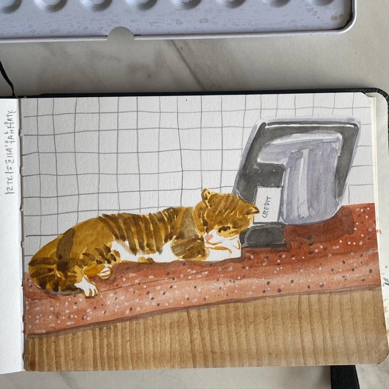 지기님은 일러스트보다 머리가 짧아졌고, 고양이 베르는 여전히 같은 자리를 지킨다. 카드를 내밀어 계산하는데, 단말기에 꼭 몸을 붙여버렸다.