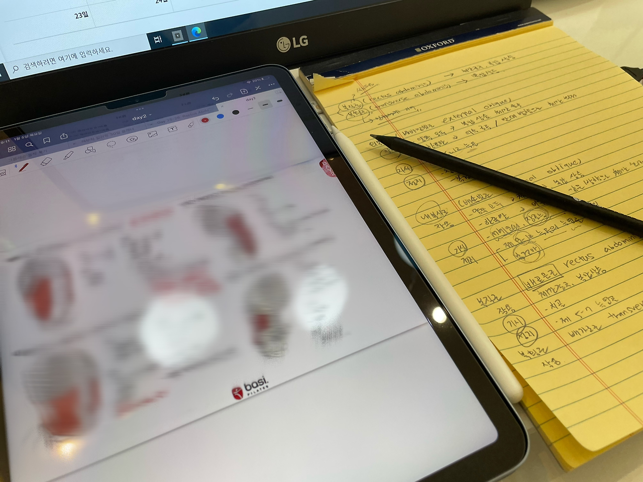 이번 수업부터는 해부학 쪽지시험이 있어 오래된 연습장을 꺼내 지난주 내내 암기하고 공부했습니다.