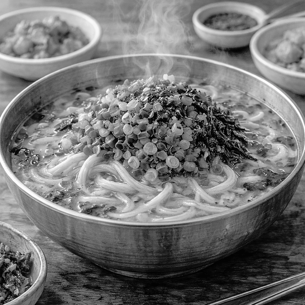 대전은 철도의 도시였다. 기다림이 일상이던 곳. 기차를 기다리던 사람들은 빨리 나오고, 따뜻하고 든든한 음식을 찾았다. 그때 가까이 있던 것이 칼국수였다. 오래 끓일 필요 없이 면을 넣고 금세 보글보글 끓어오르는 국물. 그래서 시간을 견디는 음식이 아니라 시간을 건너는 음식이 되었다. 잠깐의 허기를 채우기 위해 시작된 한 그릇이