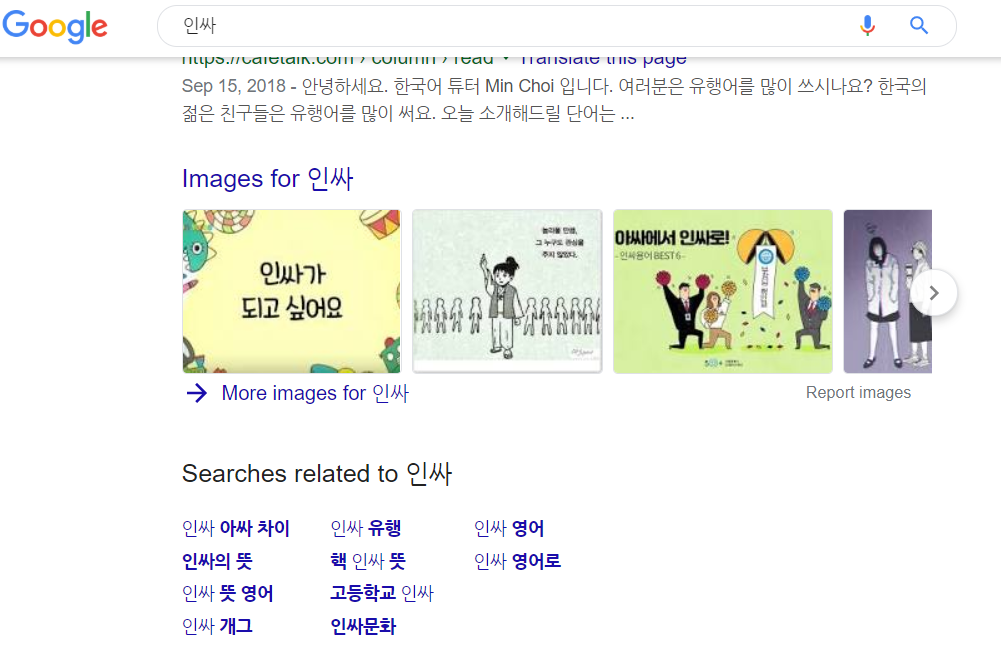 구글에 인싸를 검색했을 때 나오는 결과는 위와 같다