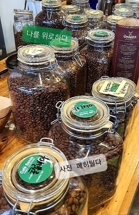 산책 삼아 조금 걸어 나가 보라 커피였고