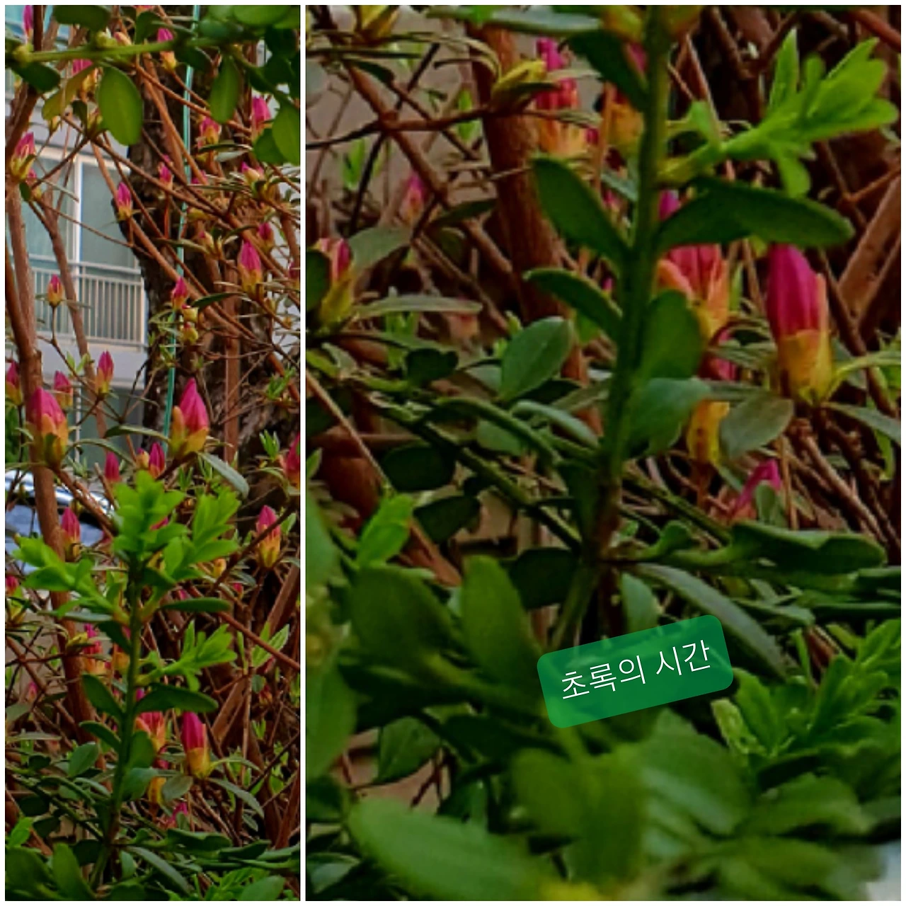 연달래라는 철쭉이 꽃봉오리 내미는