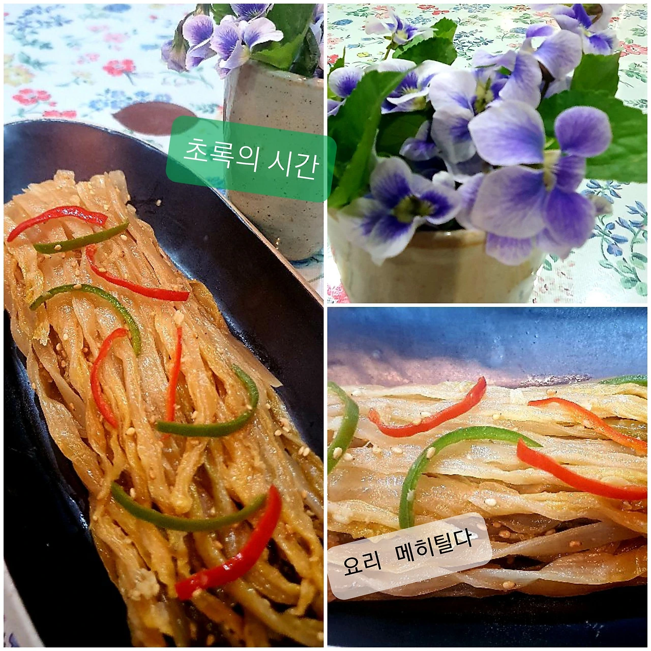 4) 청홍고추 채설어 넣고 통깨 솔솔~