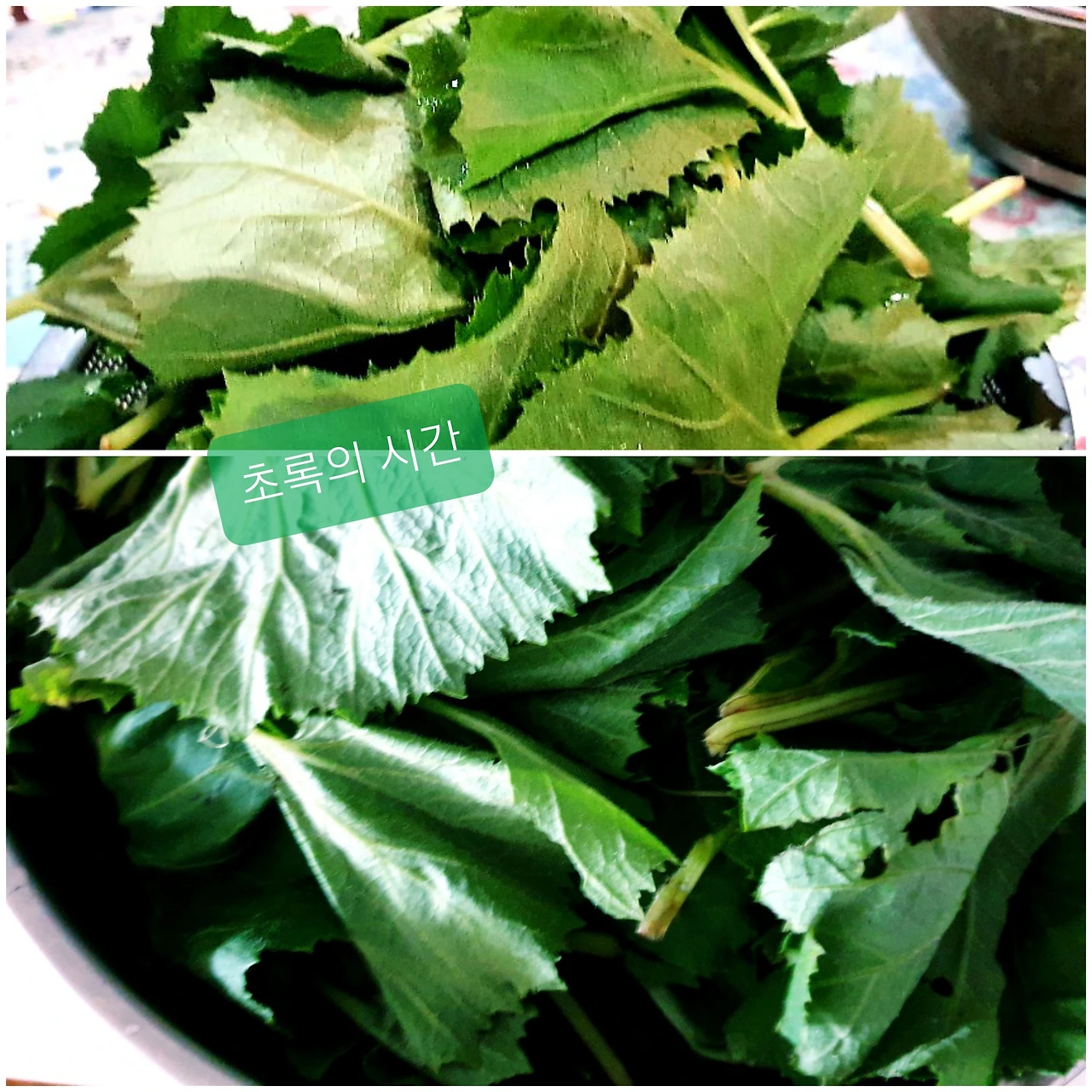 진초록 머위를 다듬으며