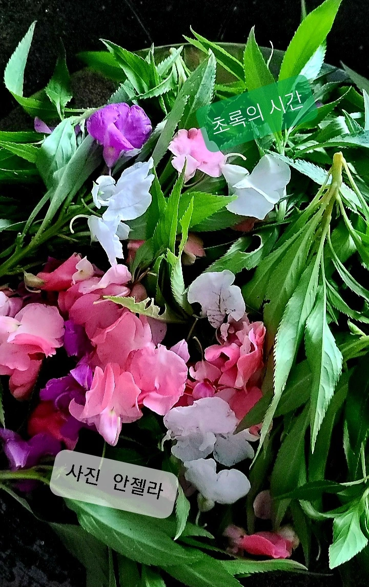 안젤라 언니가 봉숭아꽃이랑 잎사귀들을