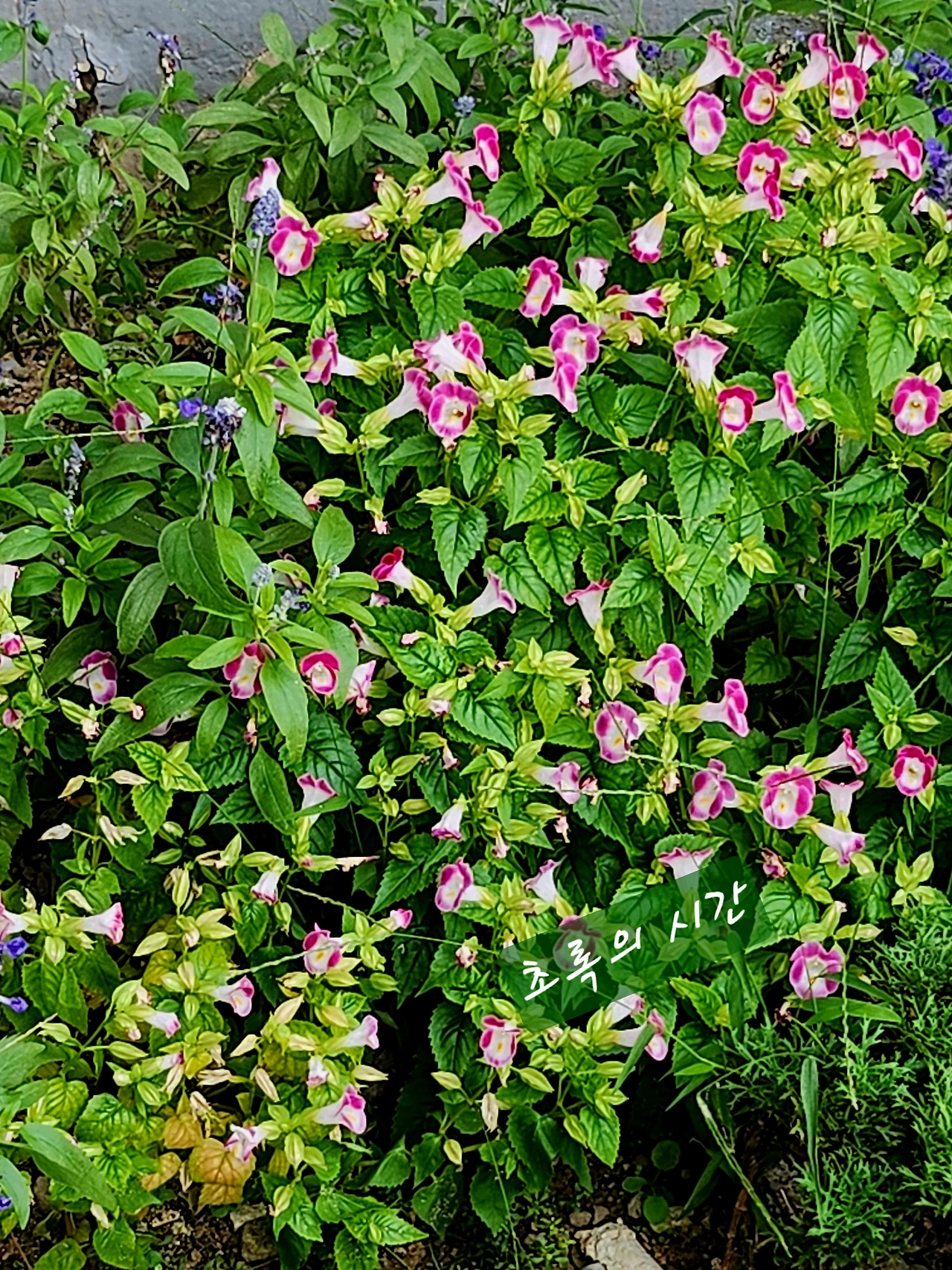 짧은 머리에 꽃 한 송이를 꽂은 채
