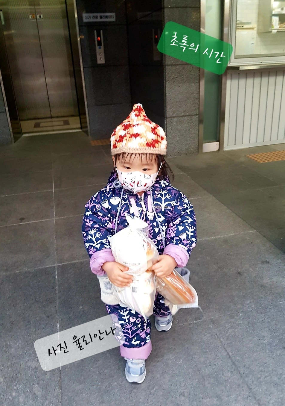 야무지게 손에 쥐고 있는 빵 봉지