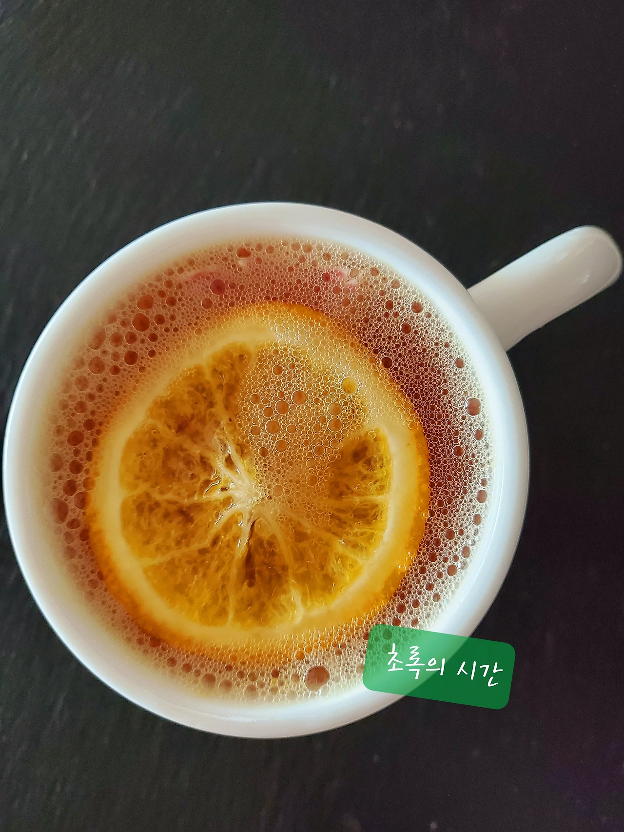 상큼하고 향기로운 레몬차를 마시고 있어요