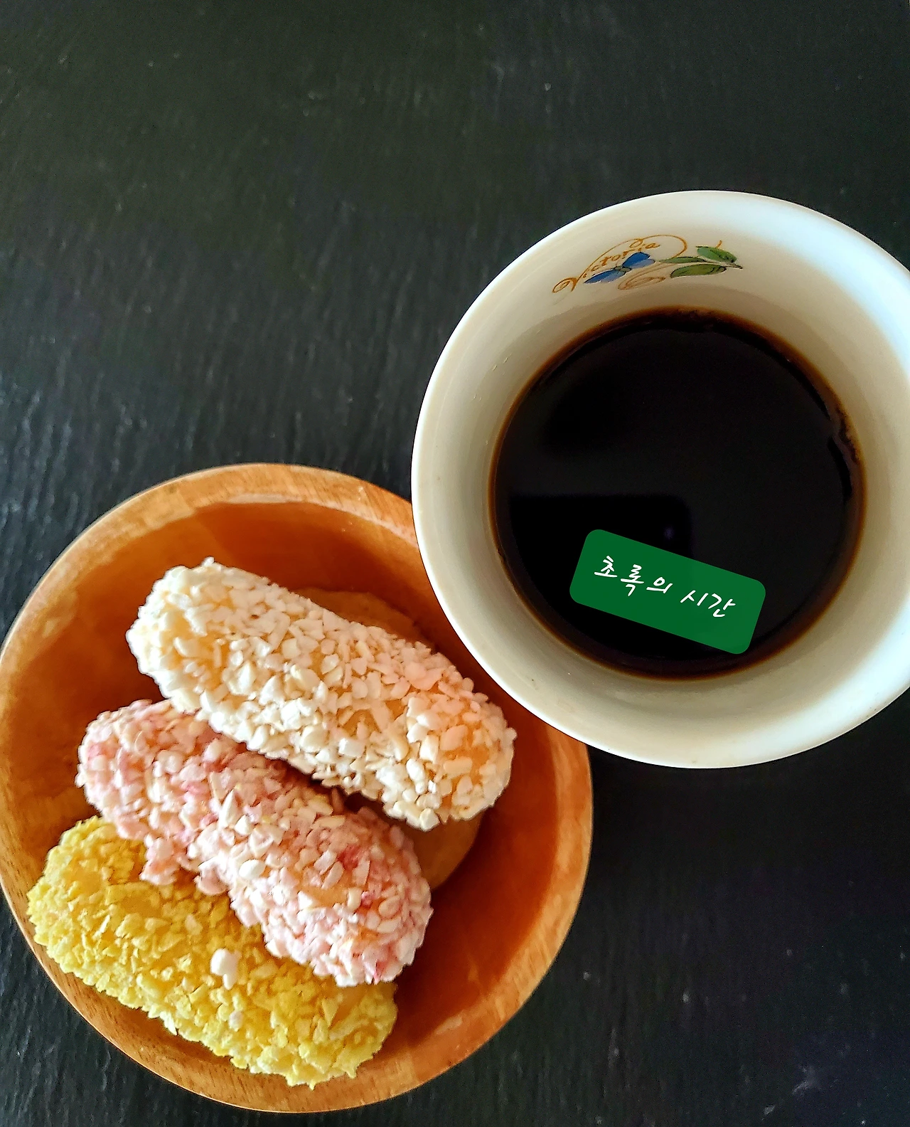 동글동글 사랑스러운 분홍 노랑 하양 유과가