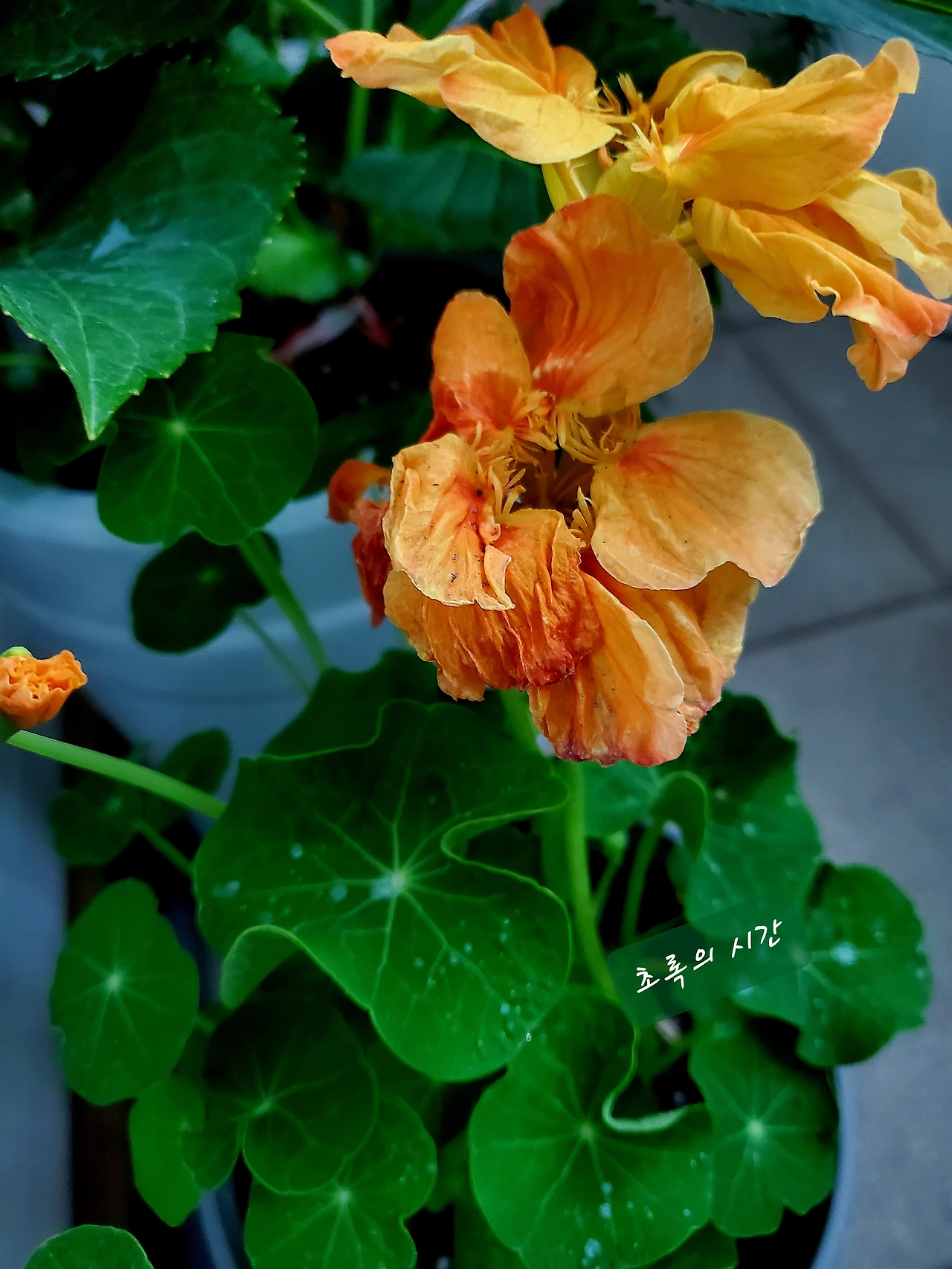 빛깔 고운 꽃은 투구를 닮은 한련화는