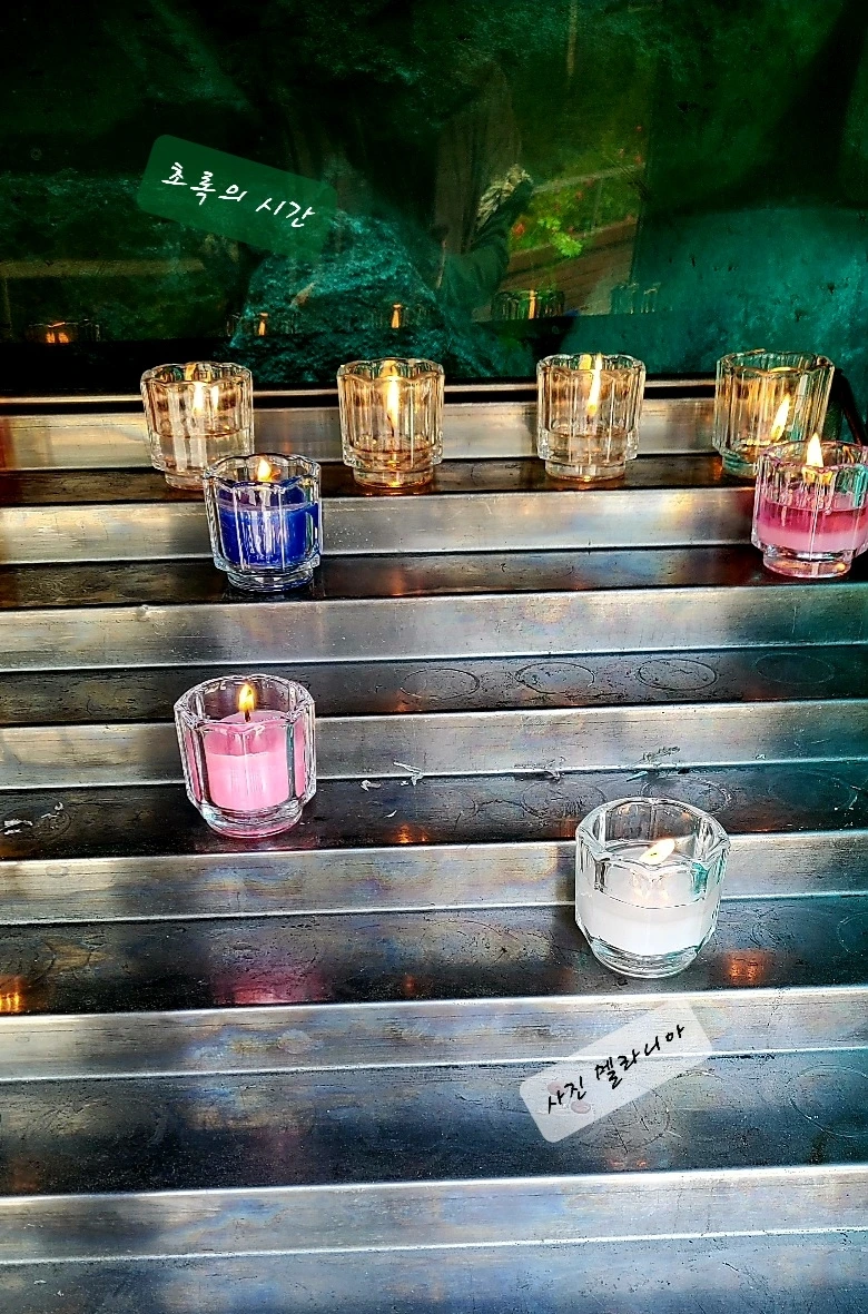 분홍으로 밝혀진 기도 초를 보며
