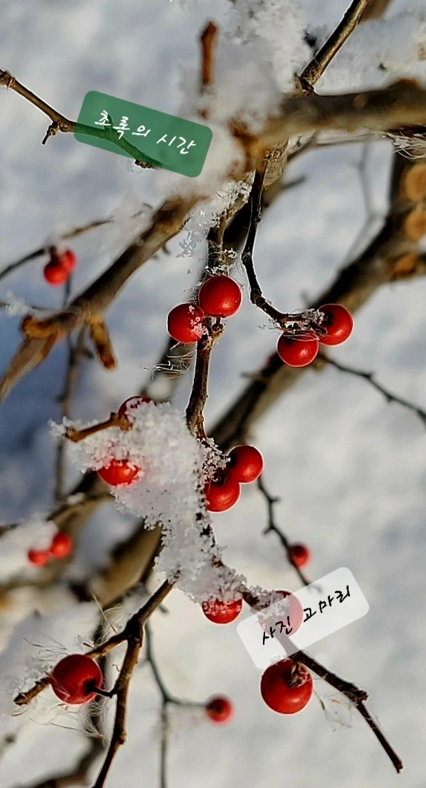 하얀 눈 속에서 빨강 열매가