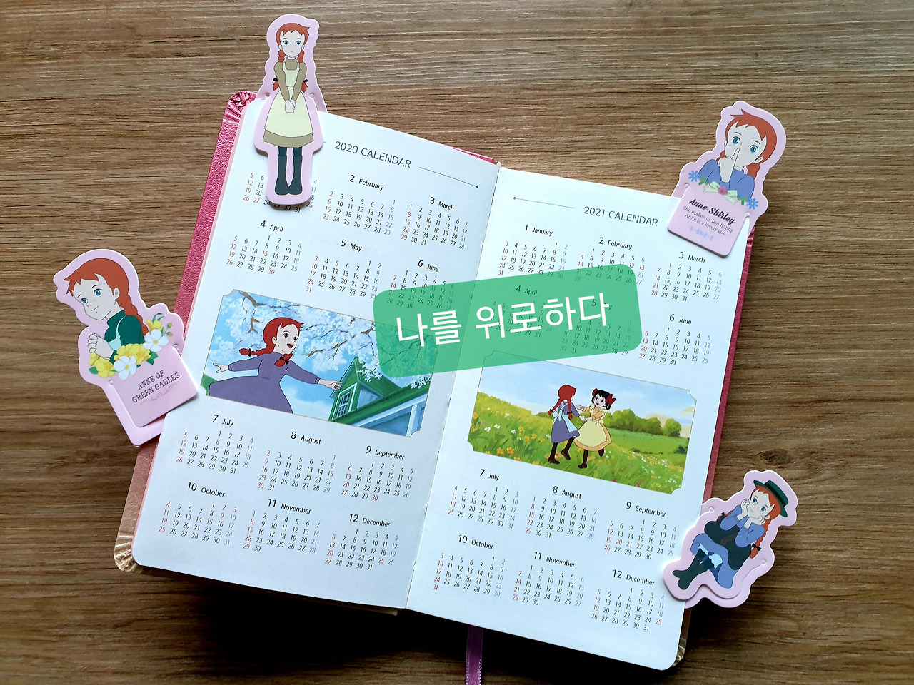 다이어리 얼굴에 빨강머리 앤이 있어서