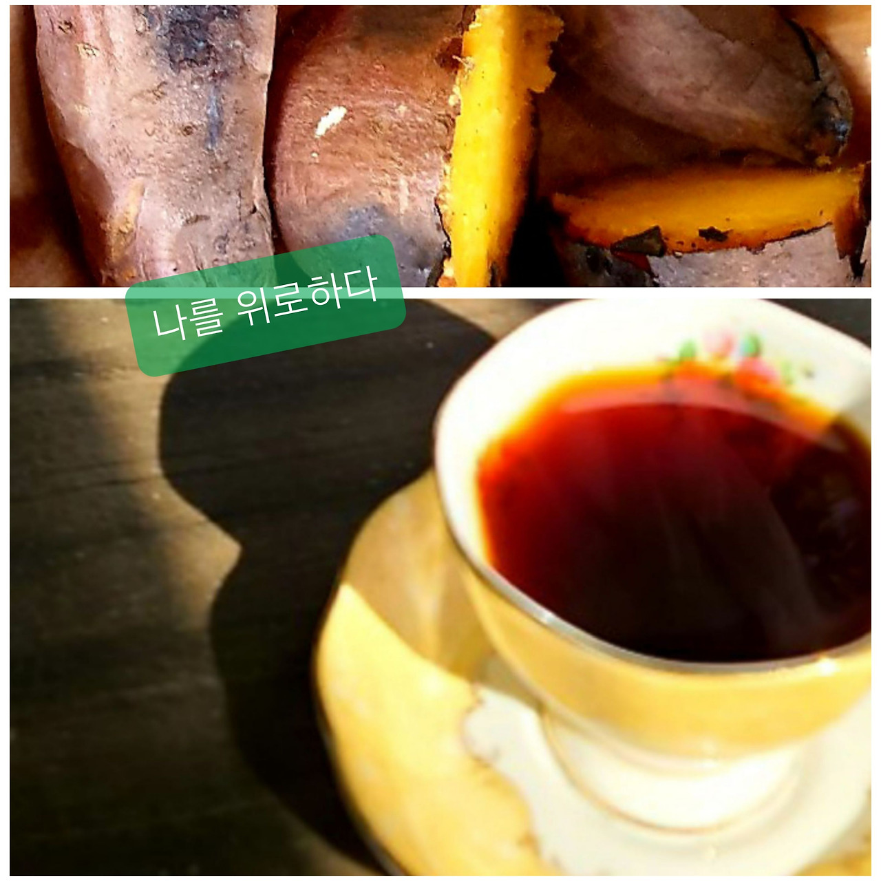 커피 한 잔과 군고구마로 정했어요