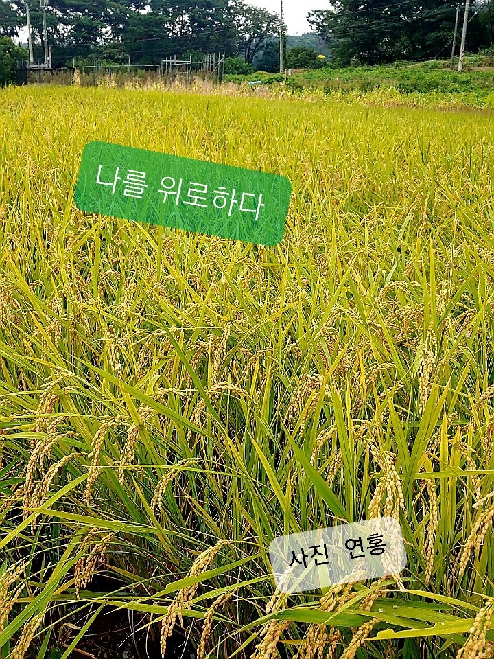 벼이삭이 익어가는 누런 들판 사진을 보며