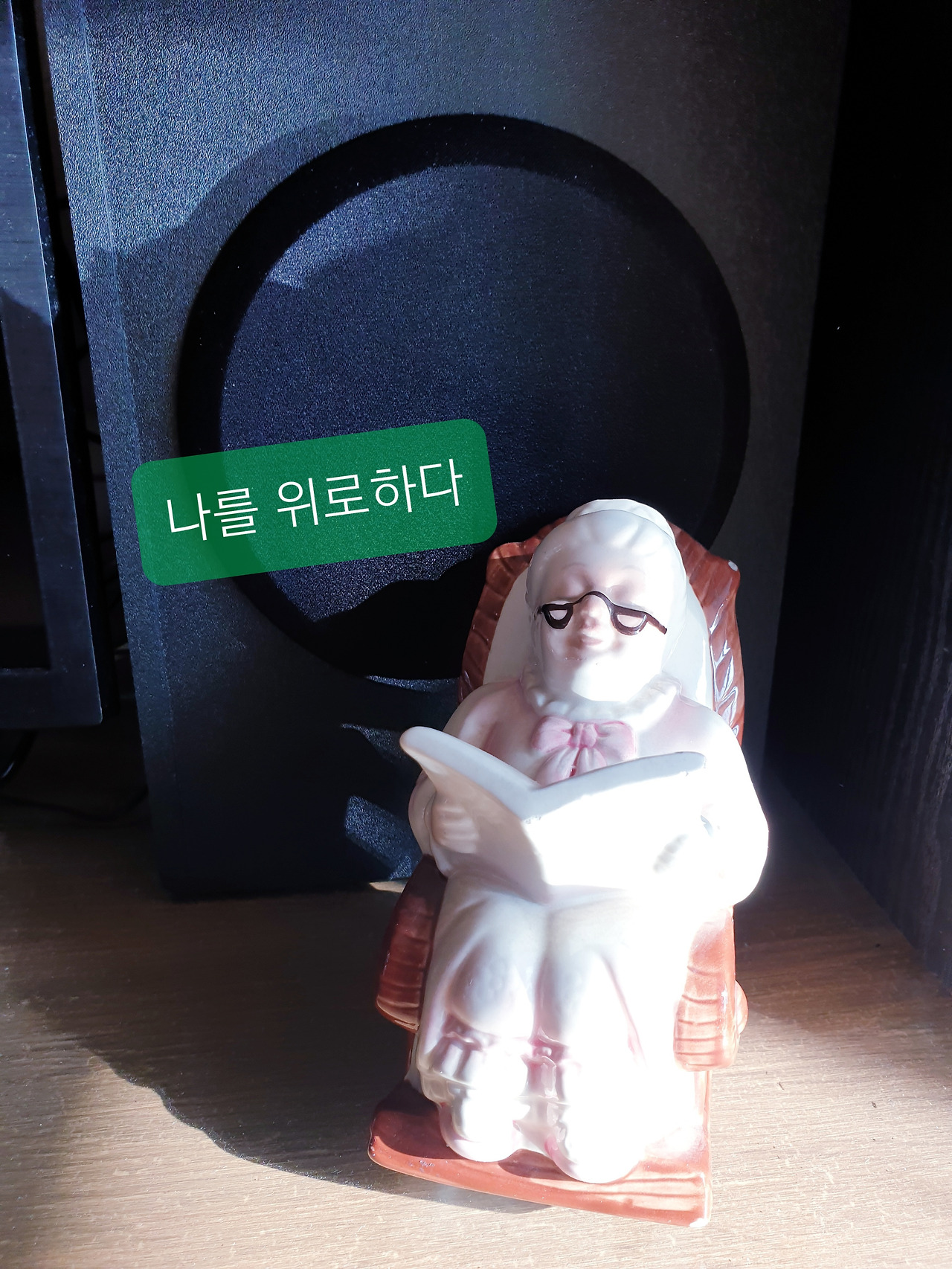 할머니 인형이 조명이라도 받은 듯