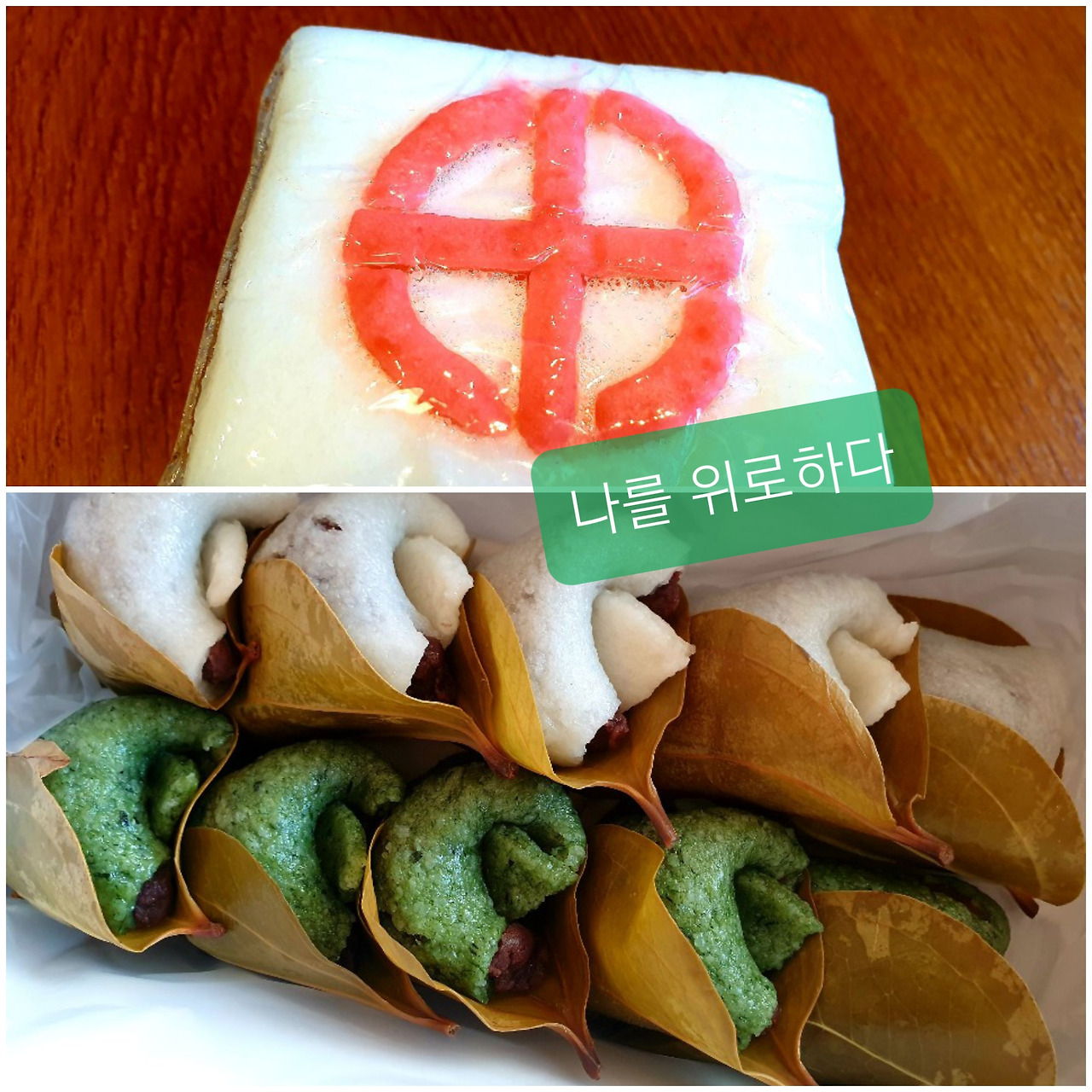 예쁘게 나누어 준 망개떡을 먹습니다