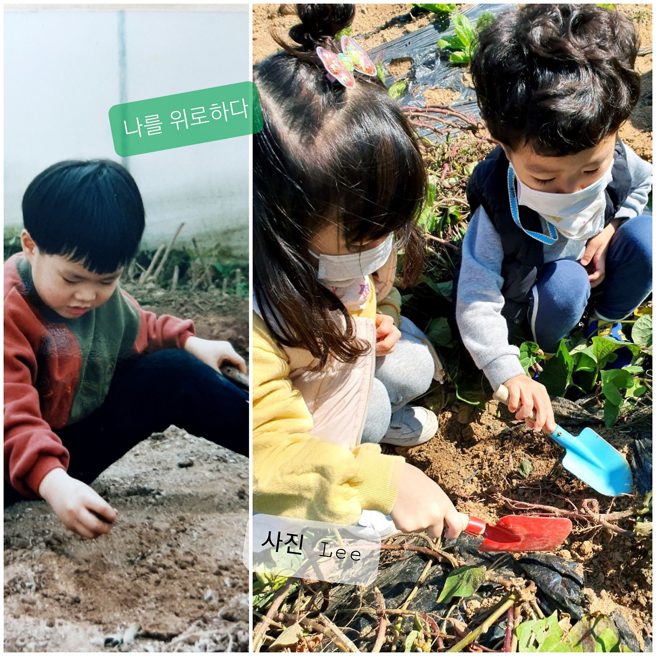 삼둥이들은 마스크에 꼬맹이 삽까지