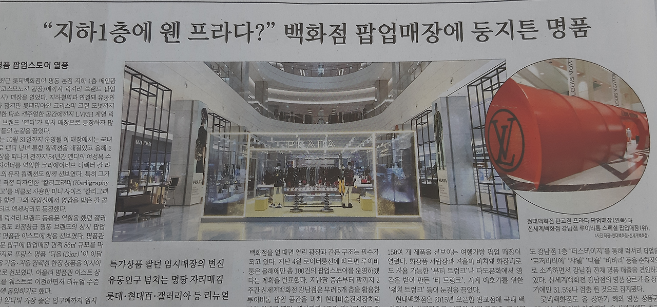 최근 백화점 명품관 매장 안에서 벗어난 명품들이 한정판·전시회로 밀레니얼 세대를 유혹하기 위해 지하 1층 팝업 매장에 둥지를 틀었다. (아니 왜?? 무슨 일로?)