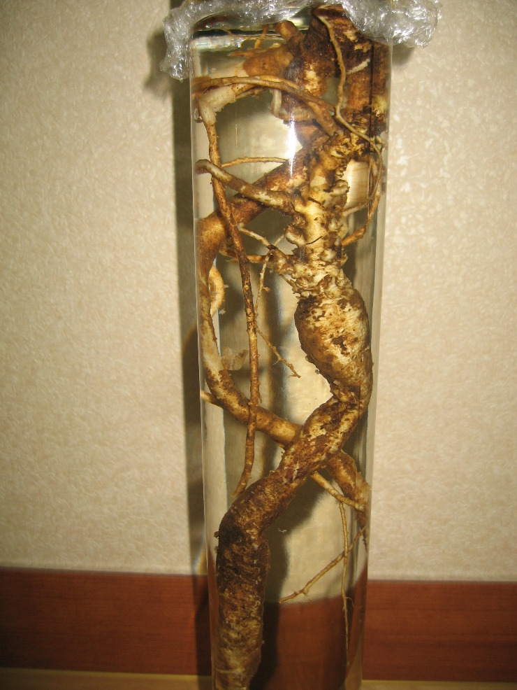 허리춤 높이의 자연산 대물 도라지 술을