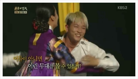 이들에게 더 관심이 가는 것은 국악 전공 박 애리 씨가 현대가요를 부르는 것이다. 간주 때는 어김없이 춤꾼 남편이 나와서 현대 무용으로 새로움을 더하고, 더 놀라운 것은 박애리 씨가 현대무용을 같이 따라 하는 부분이다. 동서양의 조화는 물론 전설의 노래를 새롭게 소화하여 완벽하게 다르면서도 같은 하나의 무대를 만들어 낼 때는 소름이 돋는다. 이들 아니면 누가 이런 무대를 만들 수 있을까?