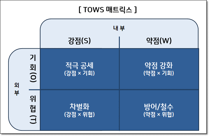 그런데 SWOT분석에서 도출된 내용을 TOWS메트릭스 분석으로 전개할 경우 충분한가? 그 방법대로 진행할 경우 제대로 된 전략이 도출되고 바람직한 방향이 될 수 있을까?
