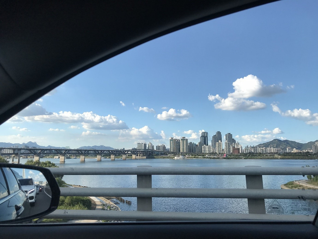 창 밖으로 보이는 하얀 구름 위에