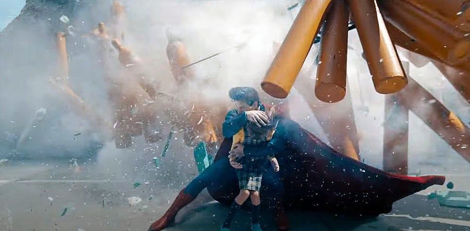 이는 우크라이나와 러시아의 전쟁, 이스라엘과 팔레스타인의 분쟁 등 지금의 세계정세를 대변하는 상징으로, 제임스 건은 정치적 개입이 아닌 인류의 생존에 대해 고뇌하는 슈퍼맨의 입장으로 그 답을 대신한다.
