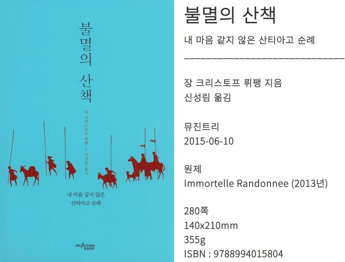 산띠아고로 가는 길은 거의 800Km에 달하며 각자 자신의 배낭과 소지품을 직접 가지고 가야 한다. 그래서 역사의 한 부분을 걷는 이 작은 모험을 시도하려는 이들이 아직은 많이 않다. 어떤 이는 걷는 즐거움으로 시작하고, 어떤 이는 종교적인 목적으로 시작한다. 또는 예술 혹은 역사적인 관심으로 이베리아 반도를 관통하기도 한다. 여러 가지 목적을 가진 이들도 있고, 때로는 약속을 지키기 위해 이 길을 시작한다는 이들도 있다. 하지만 처음 이 길을 떠날 때는 자기 내면을 리모델링하는 과정이 지금 막 시작되었다는 사실을 아무도 모른다. (11~12쪽)