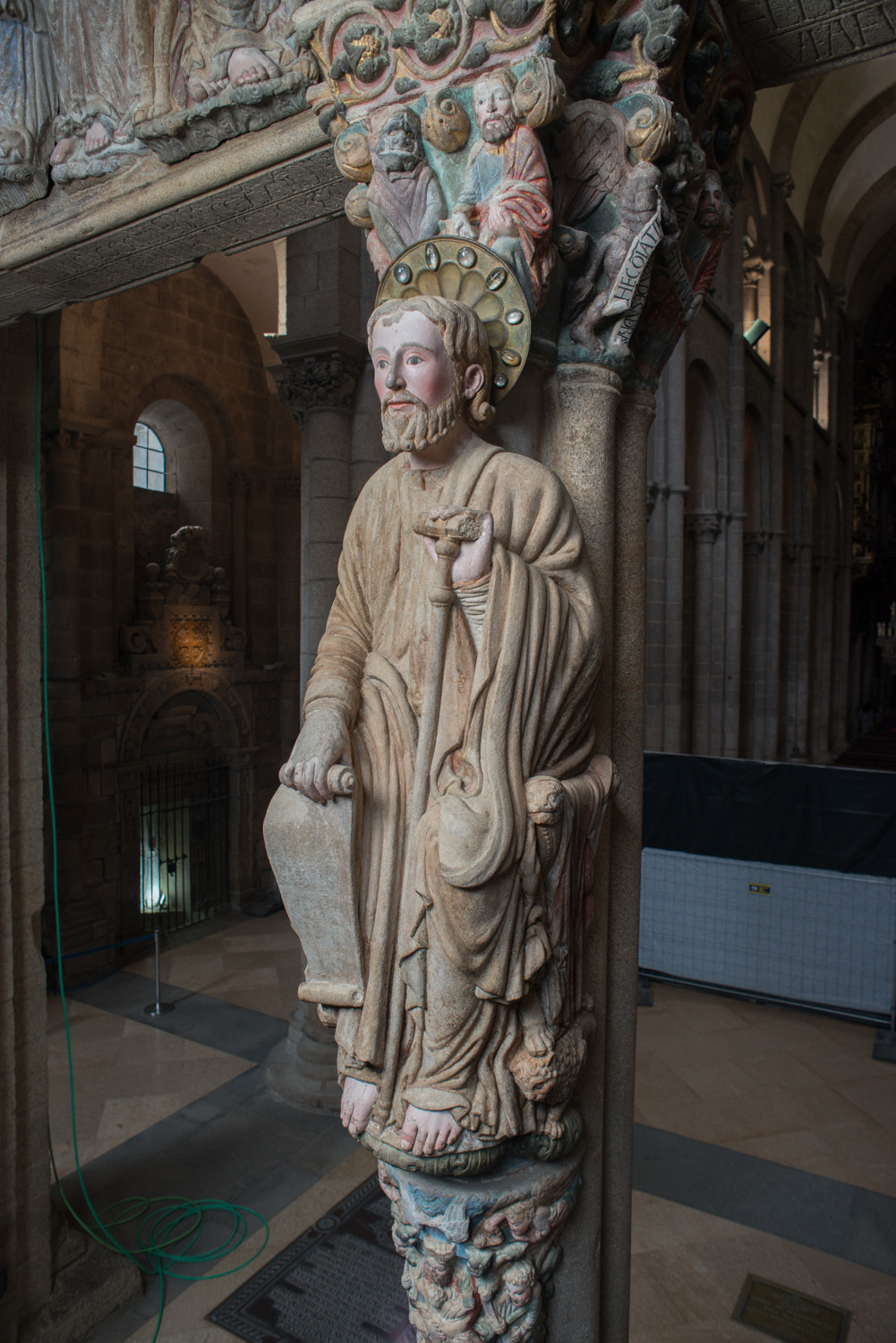 영광의 문으로 들어온 순례자는 중앙 기둥에서 야고보를 만난다. 예전에는 순례자들이 기둥 아래에 손을 얹는 의식을 했으나 기둥의 보존을 위해 지금은 하지 않는다. 거장 마태오에 의해 완성된 이 웅장한 작품은 왼쪽으로는 구약의 중요 장면과 인물들이, 오른쪽으로는 신약의 사도들과 최후의 심판인 천국과 지옥 부조로 장식되어 있다. 상단에는 요한묵시록의 원로들과 복음사가, 천사들이 조각되어 있고 정 중앙에 그리스도가 자리하며 구원의 역사를 나타낸다.