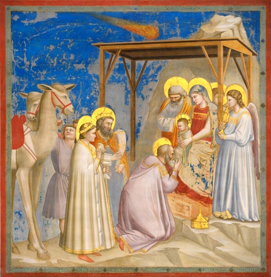 특이한 표현이 또 하나 있는데 바로 하늘의 별이다. 동방에서부터 박사들을 이끈 별을 조토는 하늘에서 흔히 볼 수 있는 평범한 별로 그린 것이 아니라, 꼬리가 달린 혜성으로 나타낸 것이다. 이는 예수의 탄생이 붙박이별이 아니라 갑작스럽게 출현하는 혜성처럼 절대적 존재의 특별한 사건임을 강조하고 있다.