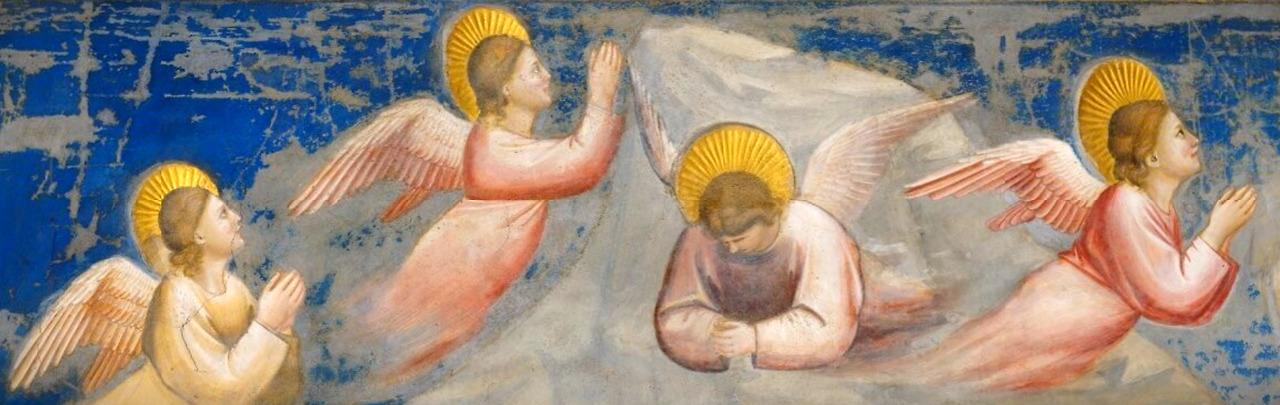 “지극히 높은 곳에서는 하느님께 영광 땅에서는 그분 마음에 드는 사람들에게 평화!” 천사들의 시선이 하늘과 아기를 번갈아 향하며 하늘에 계신 하느님과 아기 예수를 찬미하고 있다.