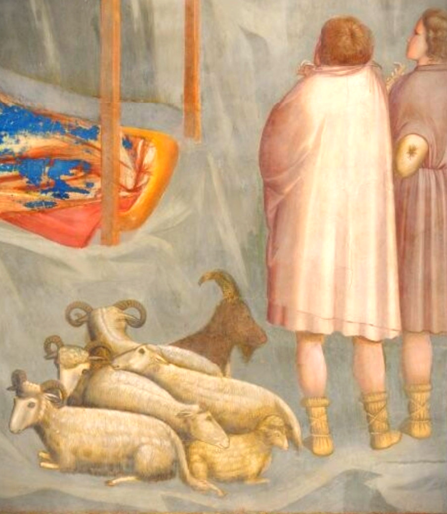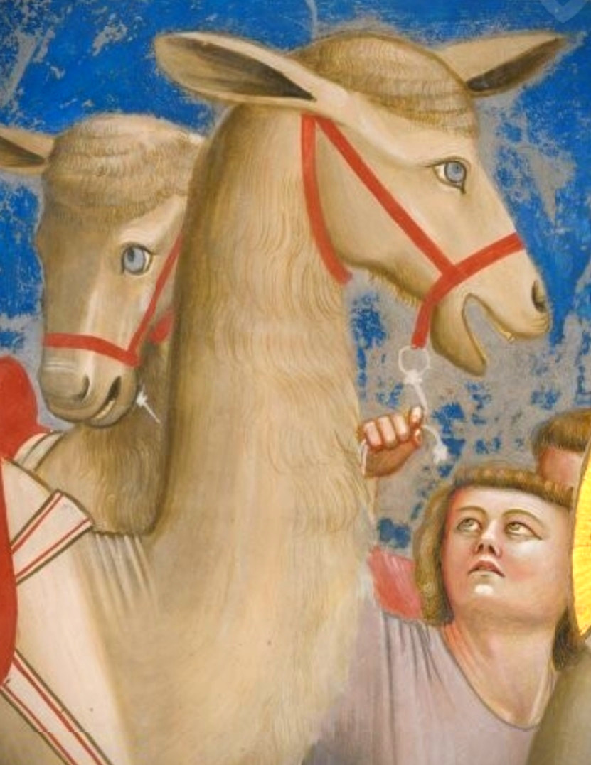 마태오 복음서는 '동방에서 본 별이 그들을 앞서 가다가, 아기가 있는 곳 위에 이르러 멈추었다. 그들은 그 별을 보고 더없이 기뻐하였다.'라고 동방 박사들의 심경을 나타냈는데, 조토는 그림에서 이들의 기쁨을 웃는 낙타로 표현하였다. 이가 드러나게 입을 벌리고, 두 귀는 너무나 좋은 나머지 머리 뒤로 납작하게 누웠다.
