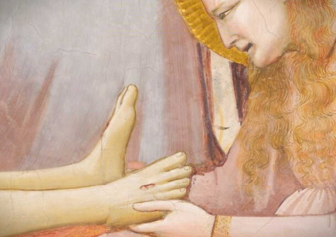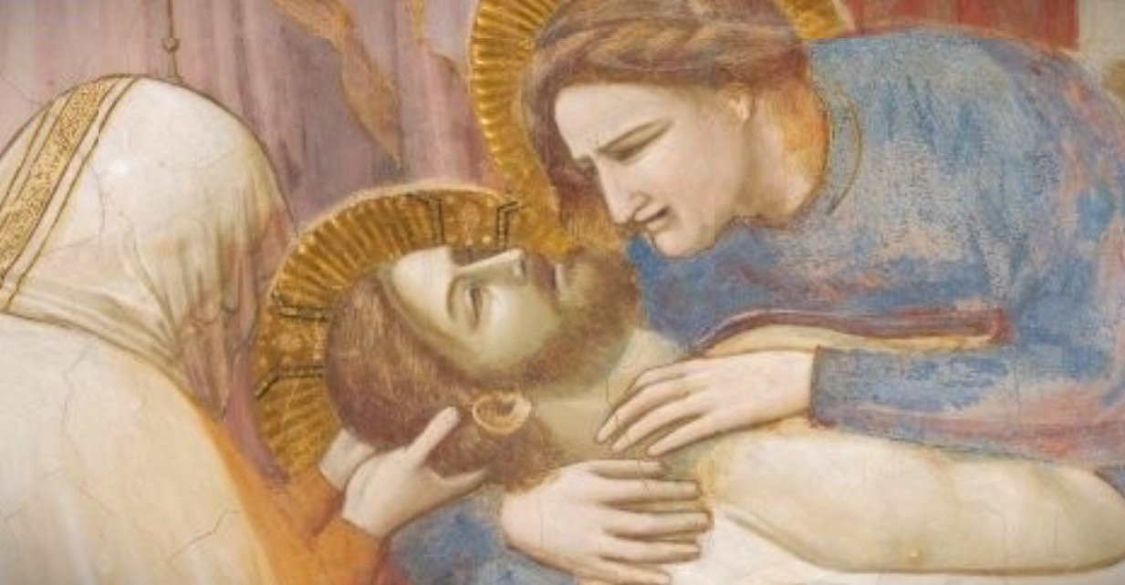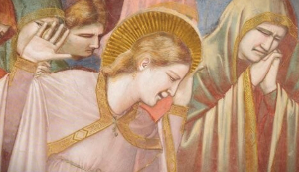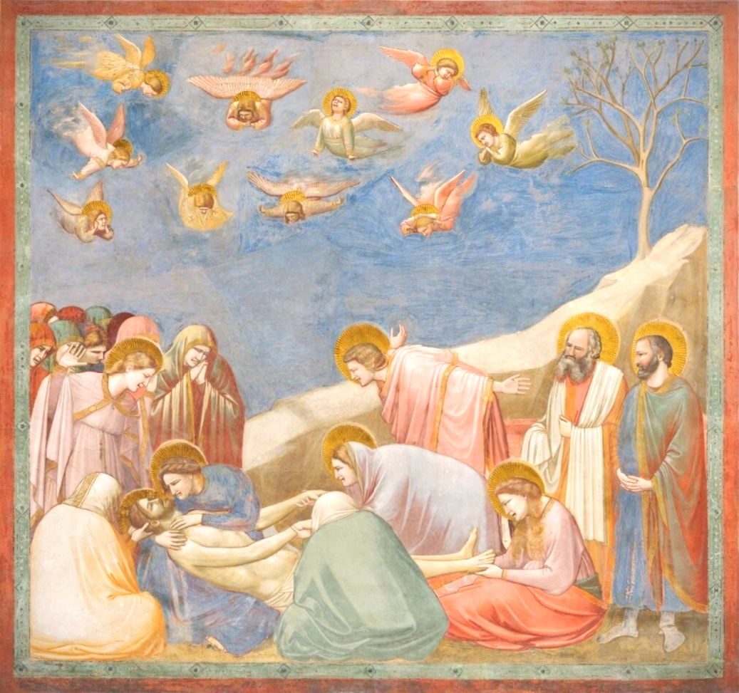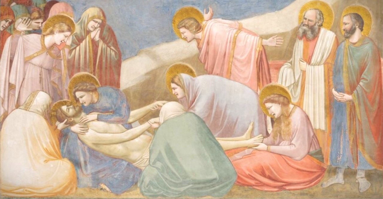 '애도'라는 이름으로 널리 알려진 이 작품은 마치 연극의 한 장면을 연상케 할 만큼 인물들의 몸짓이 매우 극적이다. 조토 이전의 회화에서는이러한 역동성이 없었다.