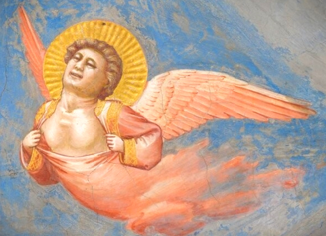 천사들의 슬픔은 더욱 역동적이다. 얼굴의 모든 근육이 일그러진 천사들은 슬픔에 겨워 제 머리를 쥐어뜯거나 얼굴을 감싸 쥐면서 온몸으로 애도를 표하고 있다.