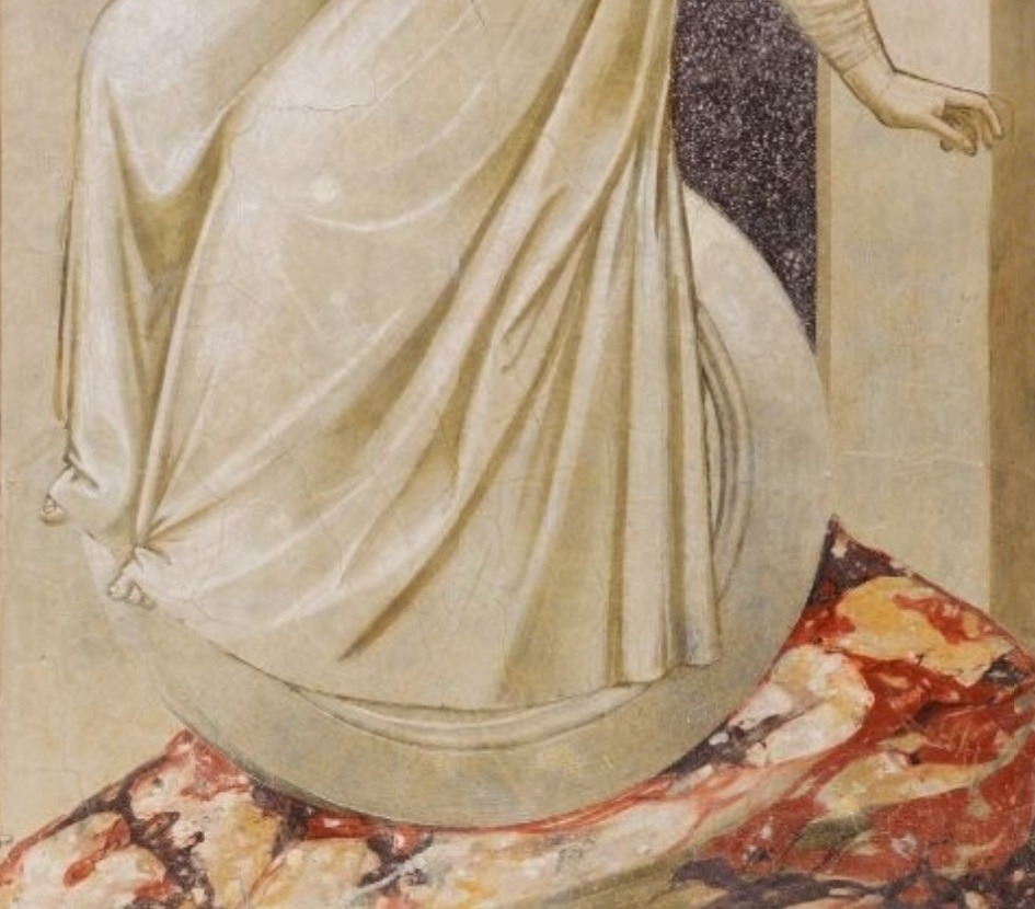 머리 뒤로 펄럭이는 옷자락이 그림에서 느껴지는 운동성을 배가시키지만 한껏 뒤로 젖혀진 몸에 비해 그녀의 표정은 매우 정적이다. 자신이 왜 넘어지는지 그 이유를 모르기 때문에 넘어지지 않으려고 안간힘을 쓰는 것이 아니라 멀뚱한 것이다. 이랬다저랬다 변덕을 부리는 이는 자신의 사풍스러움을 결코 모르는 법이다.