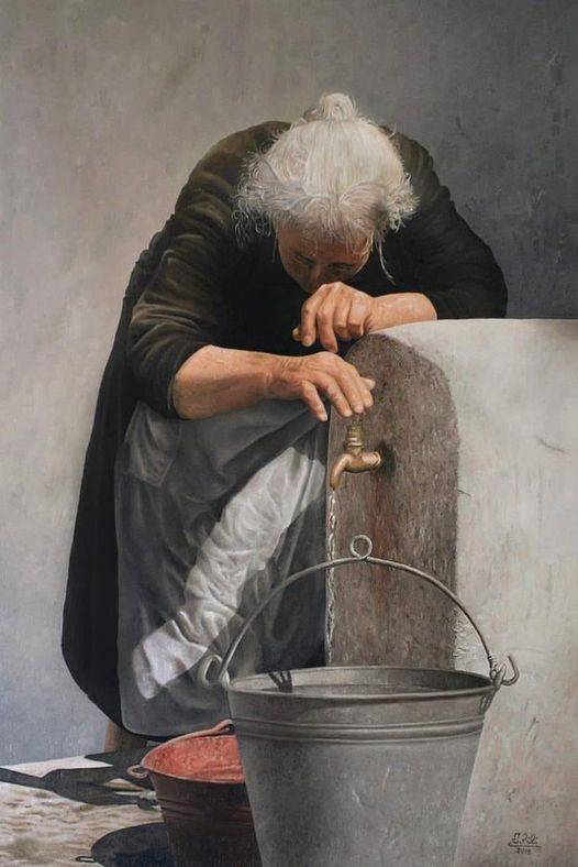 'She, the power, the life' 제목과 그림이 한데 어우러져 깊은 울림을 주는 아래 그림은 이탈리아의 음악가이자 화가인 필리의 작품으로 1976년생 현존하는 아티스트다. 굽은 허리와 평생 쉬지 않았을 손가락 마디마디 관절들이 그녀의 삶을 말없이 보여준다. 본인을 위해서는 어느 한순간 그 무엇도 하지 않았을 세상 모든 할머니들의 애달픔을 그림으로 엿본 것 같아 마음 한편이 쿵 내려앉는다. '애달프다 하지 마라. 한 세상 너희들로 인해 충분히 기쁘고 찬란했단다.' 끝끝내 자손들의 행복과 안위만 생각하는 할머니의 목소리가 들리는 듯하다.