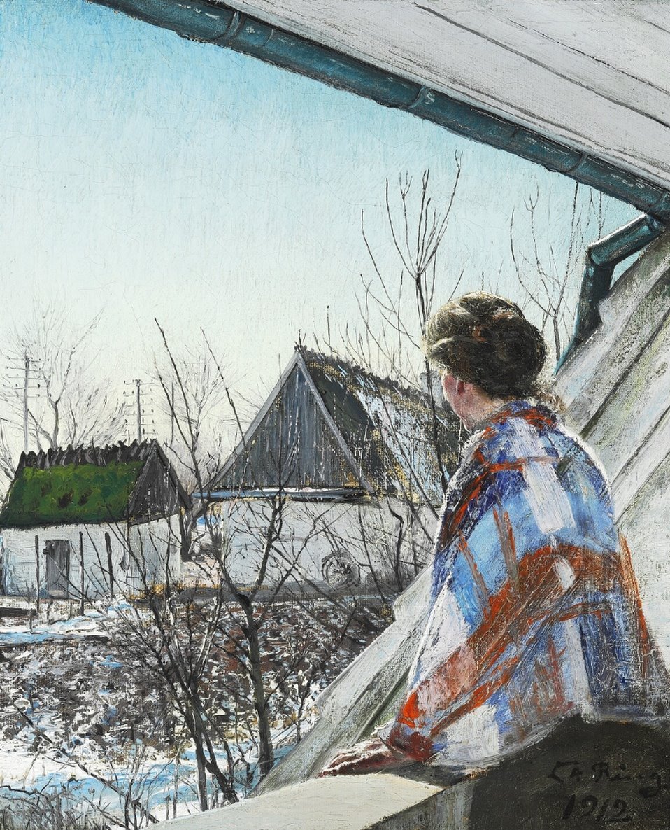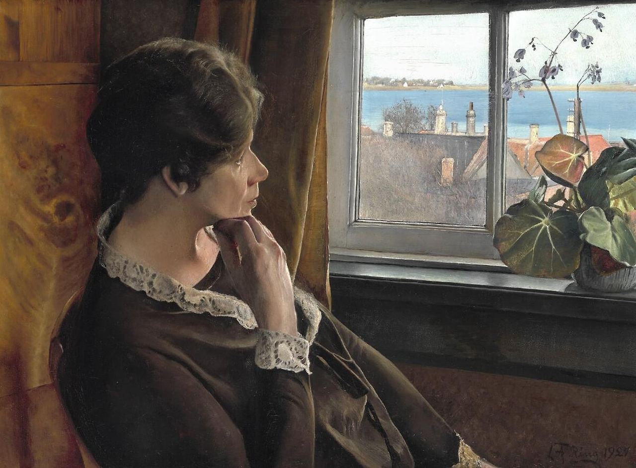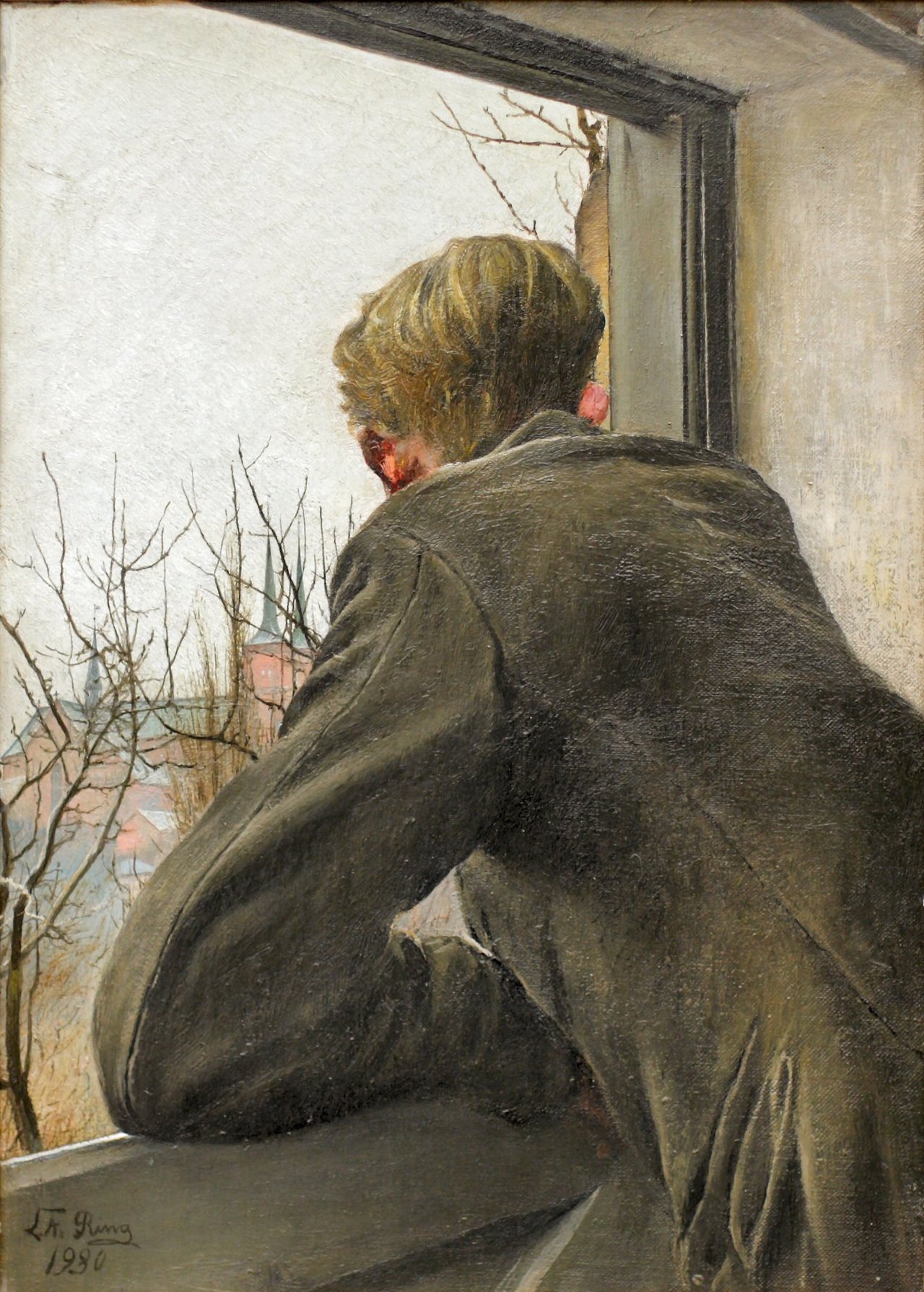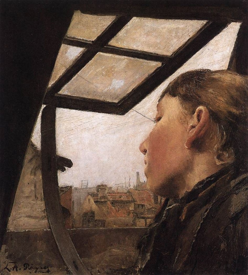 L. A. Ring_Girl Looking out of a Skylight (1885)