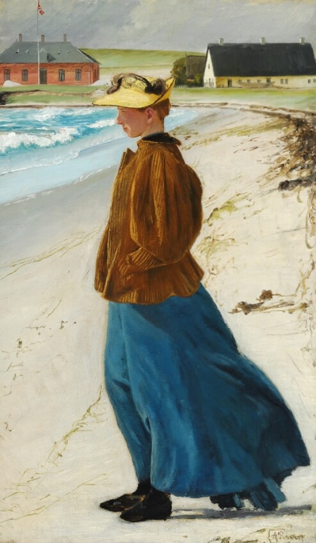 L. A. Ring_Sigrid Stands with Straw Hat on the Beach at Karrebæksminde (1897)