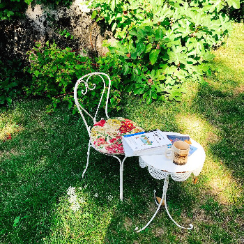 “오늘 햇볕이 너무 아름다운데 정원에서 마시는 건 어때? 테이블 가져다 줄게.”