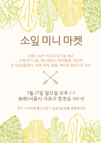 *5월 27일 일요일에 남편 바티와 작고 소박한 유기농 마켓을 열어요. 무농약 유기농 서양채소와 유기농 쿠키가 판매돼요. 페이스북 페이지 ‘소잎’ 검색해 주세요 :)